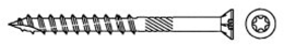Stahl, gelb verzinkt. Senkkopf, Spezialeinkerbung und Schneidezähne, mit Torx, Schaft, Fräsrippen und Reibgewinde