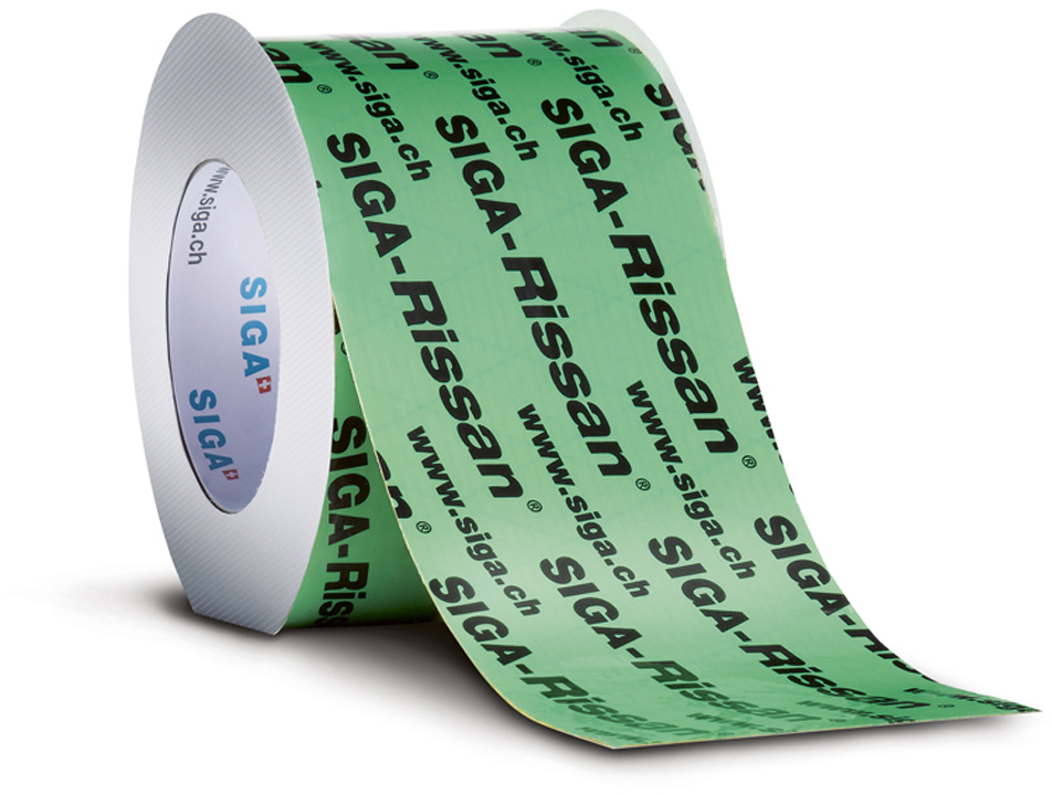 In den Breiten 100 mm und 150 mm ist das einseitig klebende Hochleistungs-Band Rissan zusammen mit dem Primer SIGA-Dockskin die optimale Lösung für den dauerhaft luftdichten Anschluss von Wandelementen an Boden und Decke im Innen-Bereich.